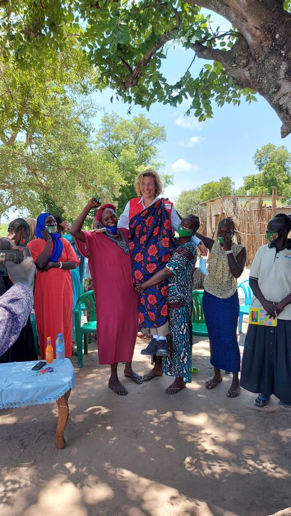 De spreekwoordelijke Afrikaanse warmte kwam mooi tot uiting toen Meindert en Marieke een andere groep vrouwen bezochten. Met een bijdrage van de Nationale Postcode Loterij nemen ze al een aantal jaar deel aan spaar- en leengroepen. Hiermee zijn kleine ondernemingen, zoals winkeltjes of naaiateliers, die volop in bedrijf zijn, gestart. Ze waren enorm enthousiast om aan het Rode Kruis te vertellen hoe het met ze ging. Marieke werd zelfs spontaan op de schouders genomen. Meindert: “Dan zie je echt waar je het voor doet. Met dit soort projecten boren we de talenten van deze vrouwen aan. Door de oorlog is veel kennis verloren gegaan, maar je eigen talent blijft. Met elkaar weten de vrouwen hun eigen situatie en die van hun gezinnen te verbeteren.”