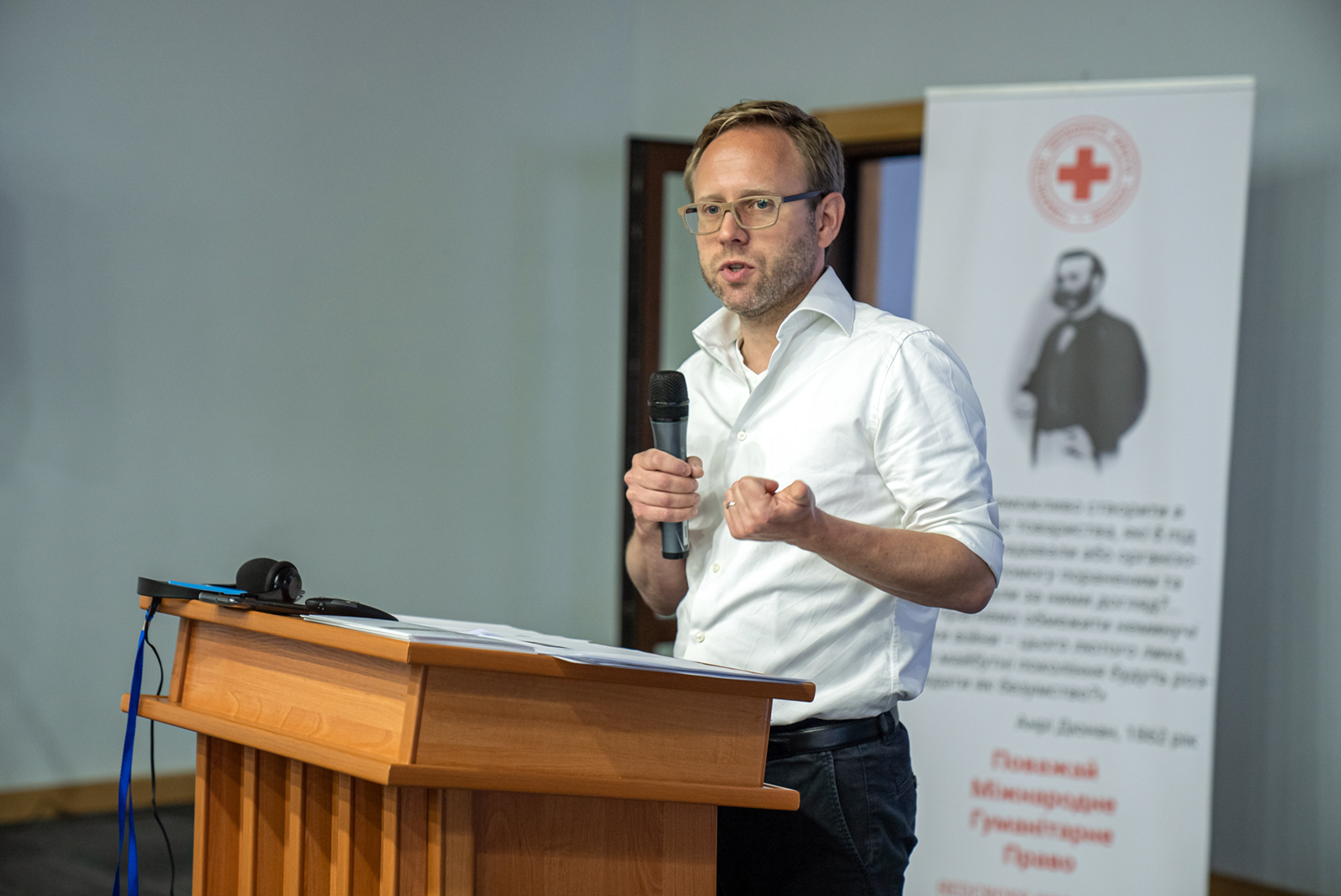 Als er iemand is binnen het Nederlandse Rode Kruis die alles weet van het humanitair oorlogsrecht (HOR) en onze grondbeginselen, dan is het senior juridisch adviseur Jan Tijmen Ninck Blok. Deze zomer gaf hij een training in Oekraïne. “Oorlog is per definitie chaos, maar er zijn regels.”