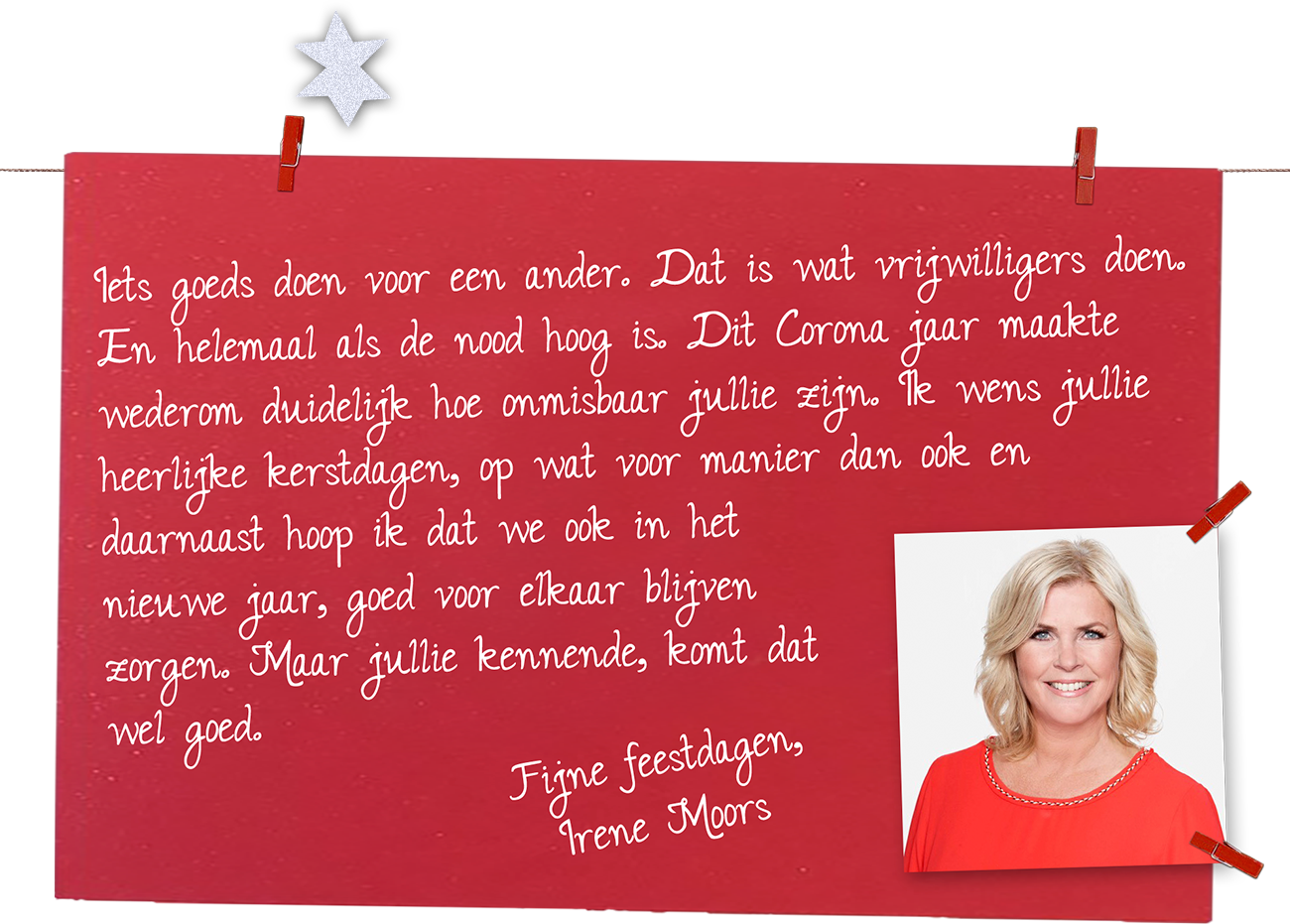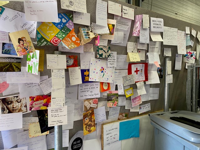 “Die eerste nacht in Brielle. Toen ze net binnen waren. Ik hoorde iemand huilen en ging er naartoe. Het was een oudere vrouw. Ze greep me vast en huilde, huilde. Omdat ze nu veilig was. Dat zei een tolk me even later. Ik heb haar vastgehouden. Ik weet niet hoe lang. En zij heeft gehuild. De hele nacht.”