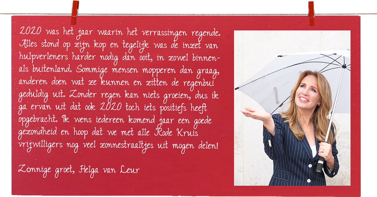 Menslievendheid is een van de zeven grondbeginselen van het Rode Kruis. En misschien is dat wat er met Els gebeurt als ze als hulpverlener bezig is. Dat ze erdoor wordt overspoeld. “Een van onze vrijwilligers is een boom van een kerel die het liefst op de grond tussen de kinderen zit. Dat is zo prachtig om te zien. Of dat vijfjarige Irakese meisje dat ik zag huppelen tussen al die gespannen volwassenen. De flexibiliteit van zo’n kind: húp en weer door. En dan samen een potje mens-erger-je-niet doen. Zij en ik. Ik geniet daarvan. Soms voer ik hele diepzinnige of juist moeilijke gesprekken met mensen. Een andere keer zit ik samen met een familie op Funda en Google Maps te kijken hoe hun nieuwe huis eruitziet. Dat is leuk.”