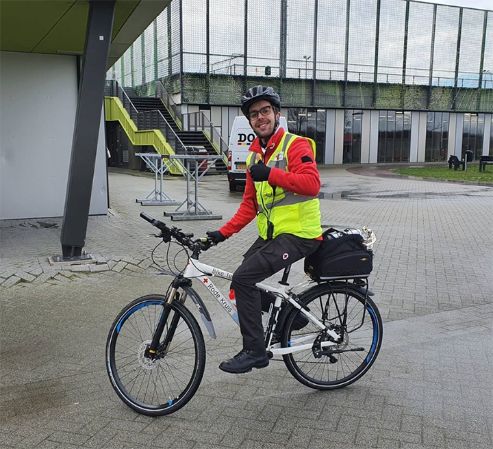 Ruim op tijd meld ik me bij de sporthal in Egmond. Ik betreed de ruimte van het Rode Kruis en maak kennis met twee vrijwilligers. Eén dame werkt als meer dan 40 jaar bij het Rode Kruis. Een andere vrijwilliger, een jonge vrouw, fulltime werkzaam als juf op de basisschool, staat vandaag en heeft de afgelopen dagen hulp verleend als vrijwilliger van het Rode Kruis. Petje af voor de inzet en enorme betrokkenheid.