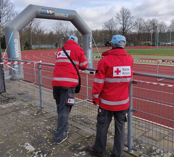 Hierna loop ik naar de start en ontmoet bij de stand van het Rode Kruis Cees Kroon, sinds kort voorzitter van de afdeling Noord-Kennemerland, maar 1,5 jaar actief bij het Rode Kruis bij evenementen en Eric Gramberg, vrijwillig fotograaf voor het Rode Kruis.